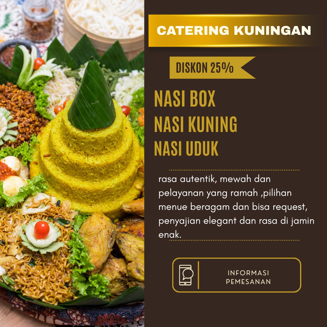 Hubungi WhatsApp: 0851-9427-2935. Catering Kuningan Ibu Eti adalah layanan catering profesional yang menghadirkan masakan rumahan enak, higienis, dan terjangkau untuk masyarakat Kuningan, Jawa Barat. Mengutamakan bahan segar dan bumbu khas tradisional, setiap hidangan disiapkan dengan penuh perhatian serta rasa yang konsisten. Usaha ini melayani berbagai kebutuhan acara, mulai dari pesta pernikahan, ulang tahun, syukuran, aqiqah, pengajian, arisan, hingga acara kantor dan komunitas. Dengan harga mulai dari 10.000 per porsi, pelanggan dapat menikmati hidangan lengkap dengan rasa yang memuaskan. Pelayanan ramah, pengemasan rapi, dan pengiriman tepat waktu menjadikan Catering Kuningan Ibu Eti sebagai salah satu penyedia catering yang paling dipercaya di wilayah Kuningan. Baik untuk acara kecil maupun besar, Ibu Eti selalu siap menjadi solusi konsumsi yang praktis dan lezat.