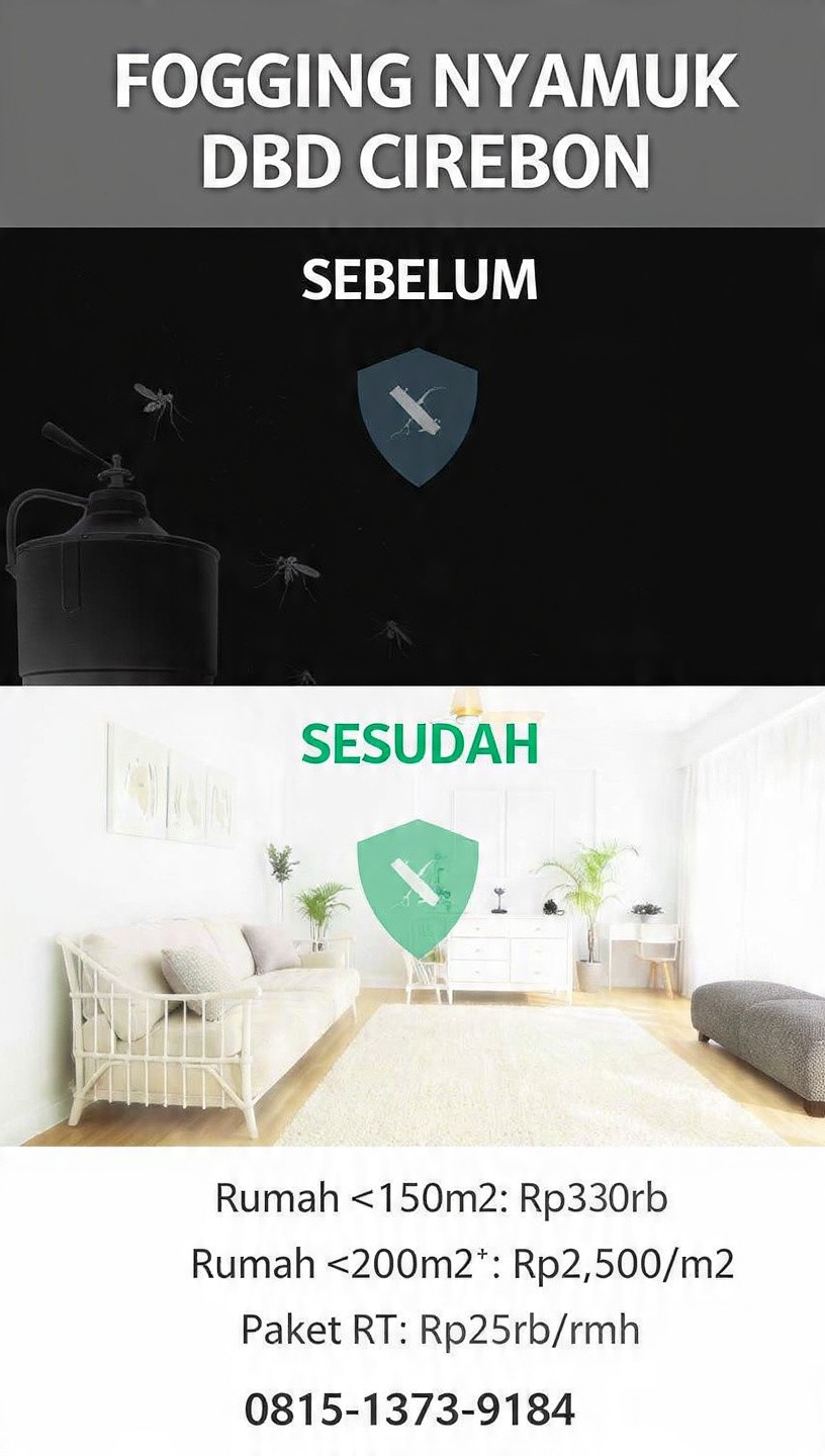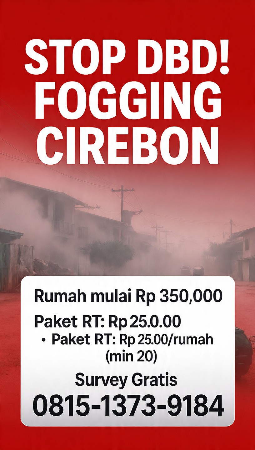Jasa Penyemprotan Fogging Nyamuk DBD Cirebon adalah layanan profesional yang bergerak di bidang pengendalian vektor penyakit, khususnya nyamuk Aedes aegypti yang menjadi penyebab utama penyebaran Demam Berdarah Dengue (DBD). Kami hadir sebagai solusi terpercaya bagi masyarakat yang membutuhkan fogging atau penyemprotan nyamuk secara cepat, aman, efektif, dan sesuai standar kesehatan. Dengan pengalaman lebih dari 10 tahun, kami melayani seluruh wilayah Cirebon, mencakup kecamatan Kejaksan, Kesambi, Pekalipan, Lemahwungkuk, Harjamukti, serta wilayah Kabupaten Cirebon seperti Sumber, Kedawung, Talun, Weru, Plumbon, Depok, Klangenan, Palimanan, Gempol, Dukupuntang, Beber, Greged, Astanajapura, Pangenan, Losari, Gebang, Babakan, Karangsembung, Karangwareng, Susukan, Susukan Lebak, Arjawinangun, Kapetakan, Gunungjati, Suranenggala, Mundu, dan sekitarnya. Sebagai layanan fogging profesional, kami menggunakan mesin modern dan obat khusus yang telah terdaftar di Kementerian Kesehatan, sehingga aman bagi keluarga, hewan peliharaan, dan lingkungan. Setiap proses penyemprotan dilakukan oleh tim terlatih yang memahami prosedur kerja, teknik fogging yang benar, serta standar keselamatan kerja. Tujuan utama layanan kami adalah membantu masyarakat mencegah potensi penyebaran DBD dengan memutus rantai berkembang biaknya nyamuk dewasa. Kami memahami bahwa kasus DBD dapat meningkat drastis di musim hujan, sehingga kecepatan dan ketepatan layanan sangat penting. Oleh sebab itu, kami menyediakan layanan fast response, siap datang ke lokasi kapan saja dibutuhkan. Kami melayani berbagai lingkungan seperti rumah tinggal, perumahan, ruko, sekolah, pabrik, restoran, gudang, area publik, hingga fasilitas umum lainnya. Dengan kualitas layanan terbaik, hasil fogging maksimal, dan harga yang tetap ramah di kantong, kami berkomitmen menjadi mitra terpercaya bagi masyarakat Cirebon dalam menciptakan lingkungan yang sehat, aman, dan bebas nyamuk berbahaya. Deskripsi Produk & Jasa – Jasa Penyemprotan Fogging Nyamuk DBD Cirebon Jasa Penyemprotan Fogging Nyamuk DBD Cirebon menawarkan solusi lengkap dan profesional dalam pengendalian nyamuk pembawa penyakit, terutama nyamuk Aedes aegypti penyebab DBD. Layanan kami dirancang untuk membantu masyarakat memperoleh lingkungan yang lebih aman dan terlindungi dari ancaman penyakit yang dapat membahayakan keluarga. Berikut adalah layanan utama yang kami tawarkan: 1. Fogging Nyamuk DBD (Pengasapan Nyamuk Dewasa) Layanan fogging dilakukan menggunakan mesin thermal fogger profesional yang mampu menghasilkan asap pekat untuk menjangkau area yang sulit terlihat, seperti semak-semak, selokan, dan sudut bangunan. Fogging bertujuan membunuh nyamuk dewasa secara cepat dan efektif. Kami melayani wilayah: Kejaksan, Kesambi, Pekalipan, Lemahwungkuk, Harjamukti, Sumber, Kedawung, Talun, Weru, Plumbon, Depok, Klangenan, Palimanan, Gempol, Dukupuntang, Beber, Greged, Astanajapura, Pangenan, Losari, Gebang, Babakan, Karangsembung, Karangwareng, Susukan, Susukan Lebak, Arjawinangun, Kapetakan, Gunungjati, Suranenggala, Mundu, dan seluruh area Cirebon lainnya. 2. Penyemprotan Larvasida / Anti Jentik Selain pengasapan, kami menyediakan layanan penyemprotan larvasida untuk menekan pertumbuhan jentik nyamuk di genangan air. Ini sangat penting karena fogging hanya membunuh nyamuk dewasa, sedangkan jentik perlu ditangani secara berbeda agar proses pembasmian lebih optimal. 3. Fogging untuk Area Perumahan dan Lingkungan RT Ideal untuk kegiatan pencegahan DBD yang biasanya dilakukan secara massal. Layanan ini mencakup fogging lingkungan luas dengan jadwal yang disesuaikan. 4. Fogging Rumah, Ruko & Kos-kosan Cocok untuk pelanggan individu yang mengalami peningkatan populasi nyamuk di rumah, ruko, atau tempat usaha kecil. 5. Fogging Komersial & Industri Kami melayani fogging di area pabrik, gudang, hotel, restoran, klinik, sekolah, dan tempat usaha lainnya yang membutuhkan perlindungan maksimal dari nyamuk. 6. Layanan Edukasi Pencegahan DBD Kami memberikan edukasi tambahan kepada pelanggan mengenai cara mencegah DBD, seperti 3M Plus, pembuangan air tergenang, serta tips menjaga rumah tetap aman dari perkembangbiakan nyamuk. Keunggulan Layanan Kami Menggunakan obat fogging berkualitas tinggi dan aman. Tim profesional berpengalaman lebih dari 10 tahun. Pelayanan cepat (fast response) dan tepat sasaran. Harga terjangkau dan bisa menyesuaikan kebutuhan lokasi. Melayani seluruh wilayah Kota & Kabupaten Cirebon. Hasil penyemprotan maksimal dan tahan lama. Tersedia layanan sekali datang atau paket berkala. Dengan cakupan wilayah yang luas serta layanan yang lengkap, Jasa Penyemprotan Fogging Nyamuk DBD Cirebon siap menjadi mitra terbaik bagi masyarakat yang ingin menjaga lingkungan tetap sehat dan bebas penyakit. Kami berkomitmen memberikan pelayanan terbaik untuk melindungi keluarga Anda dari ancaman DBD dan memastikan kenyamanan di setiap sudut lingkungan. Jika membutuhkan layanan fogging cepat dan profesional, kami siap membantu kapan pun Anda membutuhkan.